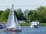 Nun bekommt der "Kommodore" aber ein neues Segelboot. Das dicke, träge, gemütliche und schwer zu segelnde Plattbodenschiff muss leider aus famiiären Gründen einer knackigen Leisure 17 weichen. Und die segelt nicht nur auf der Hamme einwandfrei, wenn auch nicht optimal, sondern damit kann - anders als mit der Jolle - auch die Ausbildung bestritten werden. Denn sie segelt sich wie eine Jolle, nur steifer. Wenn's mal schräg geht, dann kippt der Kahn nicht um, weil die Bleikiele dann wirken! Das entspannt die Anfänger der Segelei.
